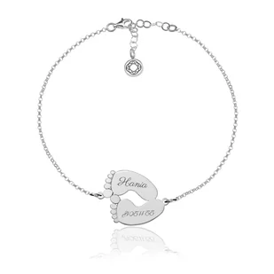 Bransoletka srebrna ze Stópkami Wykonana ze srebra pr. 925. Jest to uniwersalny wzór który zawsze będzie na czasie. długość minimalna - ok. 17 cm, maksymalna - ok. 20 cm wymiary blaszki ok.
