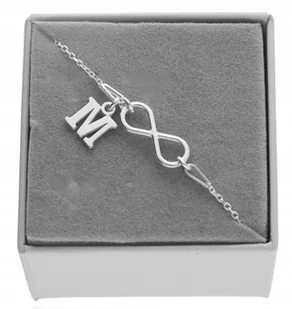 Srebrna bransoletka nieskończoność infinity literka PUDEŁKO SREBRO 925