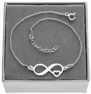 Bransoletka wykonana z nieskończonością sercem Bransoletka nieskończoność z serduszkiem Idealna na prezent komunijny, dla ukochanej , dla babci, dla dziewczyny, dla mamy, dla przyjaciółki lub dla siebie. . : ) Litera sprawi że prezent będzie unikatowy. . Długość bransoletki: ok 17 cm + regulacja = ok 19 cm Średnica łańcuszka - ok 1 mm zawieszka- ok 17 mm Wykonanie: srebro najwyższej próby 925 Bransoletka jest jakościowym wyrobem jubilerskim.