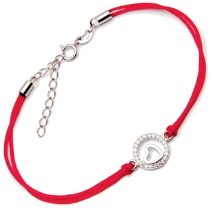 Bransoletka na czerwonym sznurku z zawieszką w kształcie koła z serduszkiem z cyrkonami. Zawieszka ręcznie wykonana z najwyższej jakości srebra próby 925. Br...
