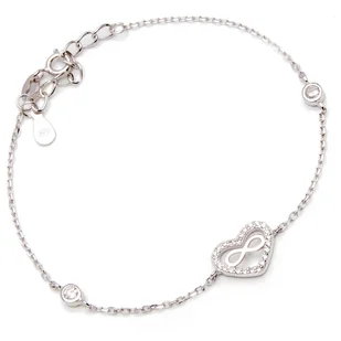 Złota Bransoletka z Nieskończonością SREBRO Serce Kryształy POZŁACANA 585