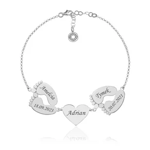 Wykonana ze srebra próby 925, ta piękna bransoletka posiada delikatne serce, które symbolizuje miłość i więź. Ale to nie wszystko - możemy spersonalizować ją poprzez wygrawerowanie na sercu i stópkach twojej treści - tworząc niepowtarzalny, emocjonalny drobiazg. Doskonała na prezent dla kogoś wyjątkowego lub dla siebie, aby nosić przy sobie ukochane osoby zawsze blisko serca. Zapewniamy najwyższą jakość materiałów i wykonania, aby ta bransoletka była nie tylko piękna, ale także trwała. Daj swoim bliskim coś więcej niż zwykły prezent - daj im kawałek swojego serca w postaci tej uroczej bransoletki.