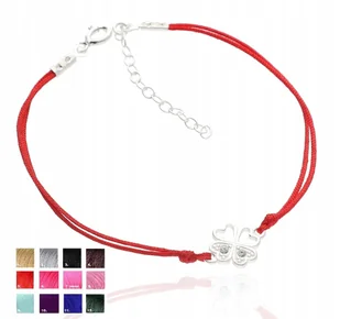 Srebrna bransoletka sznurkowa koniczynka cyrkonie bransoletka z koniczynką