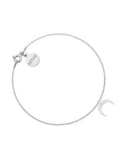 Srebrna bransoletka łańcuszkowa zdobiona księżycem i zawieszką z logo marki. Całość wykonana ze srebra 925. Długość 18 cm. Grubość łańcuszka 1 mm. Księżyc 9,...