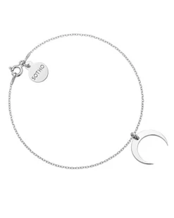 Srebrna bransoletka łańcuszkowa zdobiona księżycem i zawieszką z logo marki. Całość wykonana ze srebra 925. Długość bransoletki 18 cm. Grubość łańcuszka 1 mm...