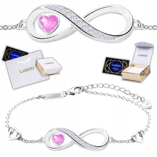 Różowa Bransoletka z Nieskończonością Serce Cyrkonia Miłość Love SREBRO 925