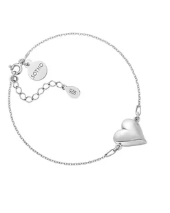 Srebrna bransoletka z sercem i zawieszką z logo marki. Całość wykonana ze srebra 925. Długość bransoletki ok. 17 cm plus ok. 3,8 cm przedłużki Grubość łańcuszka 1 mm Serce 15 x 13 mm Zawieszka z logo 10 mm Produk ...