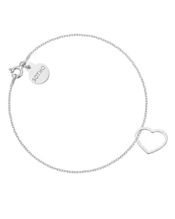 Srebrna bransoletka łańcuszkowa zdobiona serduszkiem i zawieszką z logo marki. Całość wykonana ze srebra 925. Długość 18 cm. Grubość łańcuszka 1 mm. Serduszk...