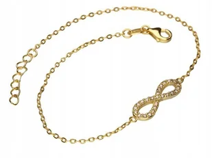 Srebrna złocona bransoletka 925 nieskończoność z cyrkoniami 1,15g Srebrna pozłacana bransoletka damska z białymi cyrkoniami. Materiał: Srebro pr. 925 Kamień: cyrkonia Wymiary: 18 cm + 2 cm Waga: 1,15g Kod produktu:
