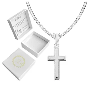 Materiał: srebro 925 rodowane Motyw: krzyż Wymiary krzyżyka: 1 cm x 2,5 cm Długość łańcuszka: 50 cm Szerokość łańcuszka: 1,5 mm