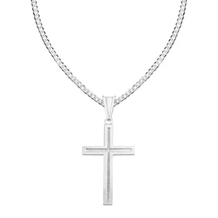 Materiał: srebro 925 rodowane Motyw: krzyż Wymiary krzyżyka: 1,6 cm x 3,2 cm Długość łańcuszka: 45 cm Szerokość łańcuszka: 1,5 mm