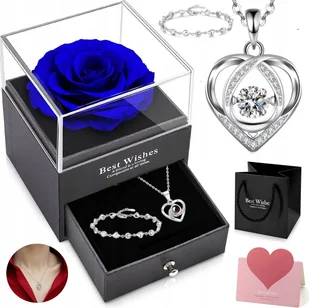 Naszyjnik Srebrny Diamentowany Serce z Cyrkonią + Gratis Bransoletka w szkatułce z prawdziwą wieczną różą. ✳️ Solidny i piękny naszyjnik w kształcie serca z ...