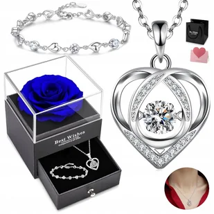 Ślub, Komunia, Przyjęcia, Święta ✳️ Dodatkowo ! Wykonana z najwyższej jakości bransoletka srebrna z cyrkoniami. ☑️ Zamówienie zapakujemy w gustowną szkatułkę z piękną wieczną różą. Piękny i elegancki naszyjnik z bransoletką sprawdzi się jako stylowy prezent dla każdej kobiety. ☑️ Wieczna róża wykonana z prawdziwego kwiatu.