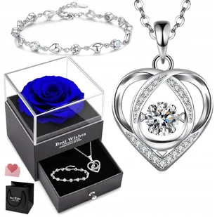 Naszyjnik Srebrny Diamentowany Serce z Cyrkonią + Gratis Bransoletka w szkatułce z prawdziwą wieczną różą. ✳️ Solidny i piękny naszyjnik w kształcie serca z ...