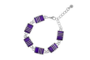 Bransoletka Prostokąty Styl klasyczny Damska bransoleta z fioletowych prostokątów. Metal w kolorze srebrnym, masa jubilerska. Regulowane zapięcie. ✔ Produkt jest dostępny ✔ Polska marka ✔ Fabryczne opakowanie Informacje Marka: Jubileo Kraj produkcji: