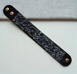 Szeroka Bransoletka Czarna Kamienie Zatrzask