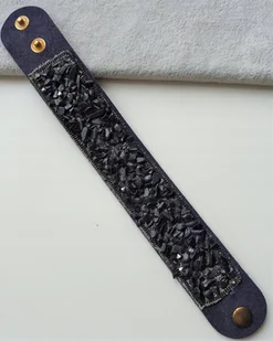 Szeroka Bransoletka Granatowa Kamienie Zatrzask