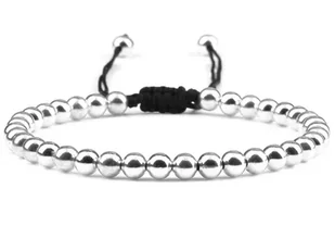 Bransoletka ze srebrnymi kuleczkami. Bransoletka na czarnym sznurku na prezent. Platerowanie metalem w odcieniu białego złota/srebra Parametry: Długość: ok 19cm (regulowana) Średnica kuleczki: ok. 3mm Kod produktu: 104324