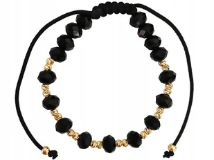 Szurkowa bransoletka ze złotymi kulkami 585 z czarnymi koralikami 14kt Wyjątkowa bransoletka sznurkowa z czarnymi koralikami. Surowiec: złoto 585 Wielkość ko...