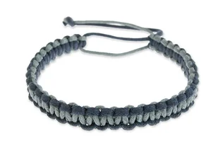 Bransoletka pleciona wiązana Ręcznie pleciona bransoletka wykonana ze sznurka jubilerskiego w kolorze szarym i granatowym. Posiada regulowany obwód, za pomoc...