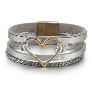 Wielowarstwowa skórzana bransoletka z sercem w stylu boho Szara