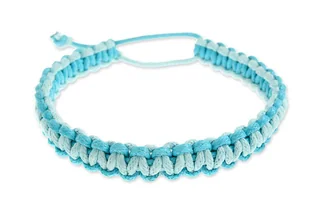 Polska Kolor: błękitny Materiał: sznurek jubilerski woskowany Szerokość: 1,0 cm Obwód: uniwersalny regulowany, min.