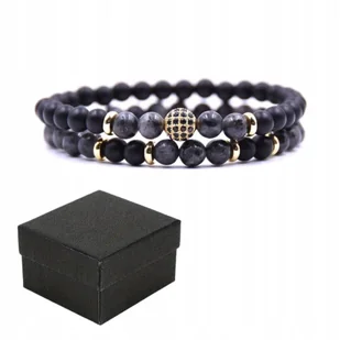Zestaw 2 Bransoletek Czarna i Szara Elegancki z Złotym Elementem + Box