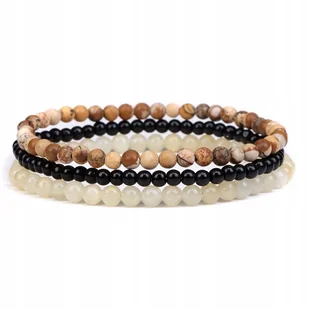 Zestaw 3 x Bransoletka Damska Kamień Naturalny Kamień Obrazkowy Czarny Onyks Topaz 4 mm Koraliki Elastyczna Materiał: kamień półszlachetny Kamień: Kamień Obrazkowy, Czarny Onyks, Topaz Długość bransoletki: regulowana w zakresie 19 - 25 cm Szerokość bransolety: 4 mm Wymiary koralików:
