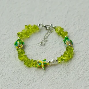 Zielona Bransoletka Perła Żółwie Kamienie Ręcznie Robiona Summer Shells