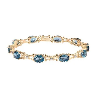 Staviori Bransoleta 18cm. 10 Diamentów, szlif brylantowy, masa 0,05 ct., barwa H, czystość I1-I2. 10 Topazów London Blue, masa 12 ct.. Żółte Złoto 0,585.