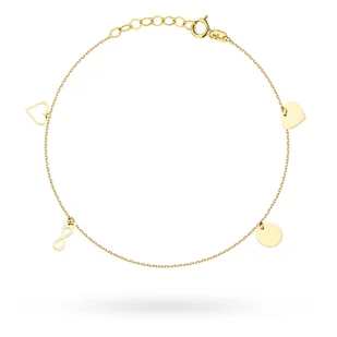 Złota bransoletka 585 14kt damska z wiszącymi elementami nieskończoność serce kółko na prezent s