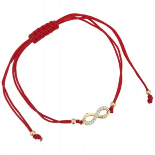 Złota bransoletka 585 czerwona sznurkowa z nieskończonością infinity Złota bransoletka sznurkowa z nieskończonością oraz kuleczkami. Parametry: Złoto próby: 585 Kolor: żółte złoto Wielkość nieskończoności ok; 1,7 cm x 6mm Średnica kuleczek ok: 3 mm Długość ok: 19 cm (regulowana) Waga: