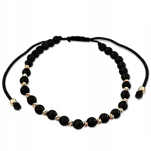 Złota bransoletka 585 sznurkowa zdobiona czarnymi i złotymi kuleczkami Złota bransoletka sznurkowa z czarnych kuleczek przeplatanych złotymi kuleczkami. Parametry: Złoto próby: 585 Kolor: Żółte złoto Wymiary: Długość: ok 19 cm Średnica kuleczki czarnej: ok 0,4 cm Średnica złotej kuleczki: