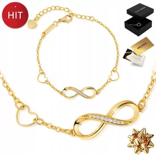 ZŁOTA BRANSOLETKA DAMSKA 585 NIESKOŃCZONOŚĆ SERCE CYRKONIE DLA KOBIETY