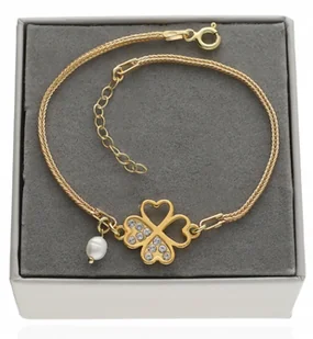 Złota bransoletka koniczynka KAMIEŃ NATURALNY PERŁA Dzień Kobiet 925