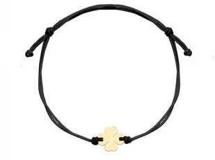 Złota bransoletka sznurkowa 333 koniczynka na czarnym sznurku Czarna sznurkowa bransoletka damska ze złotą, gładką koniczynką. Parametry: Złoto próby: 333 Kolor: Żółte złoto Długość: regulowana Wysokość/szerokość elementu: 7,8 mm x 7,8 mm Waga: