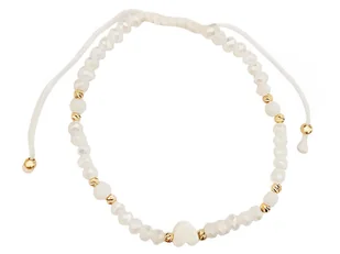 Złota bransoletka sznurkowa 585 biały sznureczek z koralikami i sercem kuleczki