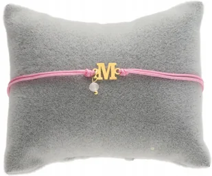 Złota Bransoletka sznurkowa dowolna literka litera kwarc różowy SREBRO 925
