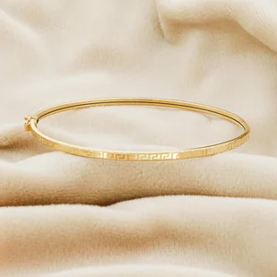 Złota bransoletka sztywna bangl wzór grecki pr. 585 Precyzyjnie wykonana złota bransoletka próby 585. Kamień: Bez kamienia Motyw: Wzór grecki Materiał: Złoto Próba złota: