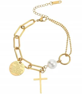 Złota Bransoletka z Krzyżem z Dużą Perłą ze Stali Szlachetnej *** Zapraszam do kliknięcia u góry w "Sprzedaje JakubC13" gdzie znajdziesz wiele innych ciekawych produktów *** Cechy produktu: ✔️ Długość całkowita 22 cm ✔️ Starannie wykonany ✔️ Nowoczesny i modny design ✔️ Wygodny w codziennym noszeniu ✔️ Nie zawiera niklu, nie uczula ✔️ Idealny na prezent Idealny na okazje: ✔️ Randki i wyjścia ✔️ Ślub i wesele ✔️ Urodziny, rocznice ✔️ Prezent dla bliskiej osoby ✔️ Walentynki i Dzień Kobiet Dlaczego warto kupić u nas: ✔️ Szybka wysyłka z Polski ✔️ Bezpieczne zakupy ✔️ Gwarancja satysfakcji ✔️ Możliwość zwrotu ✔️ Wysoka jakość produktów Pielęgnacja: Aby długo wyglądał jak nowy, przechowuj go w suchym miejscu, unikaj kontaktu z wodą, perfumami i detergentami.