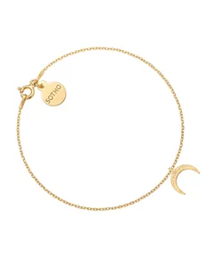 Złota bransoletka łańcuszkowa zdobiona księżycem i zawieszką z logo marki. Całość wykonana ze srebra 925 powlekanego 24 karatowym żółtym złotem. Długość 18 c...