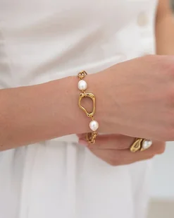 Złota bransoletka z perłami i nieregularnym ogniwem Paraiso Solenya