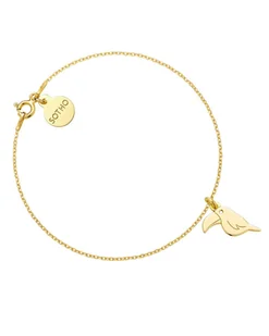 Złota bransoletka łańcuszkowa zdobiona tukanem i zawieszką z logo marki. Całość wykonana ze srebra 925 powlekanego 24 karatowym żółtym złotem. Długość branso...