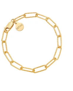 Złota masywna bransoletka z zawieszką z logo marki. Całość wykonana ze srebra 925 powlekanego 24 karatowym żółtym złotem. Długość bransoletki 18 cm Ogniwka z...