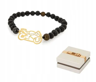 Męska bransoletka z kamieniami Lawy Bronzytem oraz zrobionym ze złota motocyklem to stylowy dodatek dla każdego miłośnika motoryzacji. Kamienie lawy symboliz...