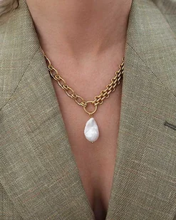Złoty naszyjnik łańcuch z perłą barokową ze stali chirurgicznej