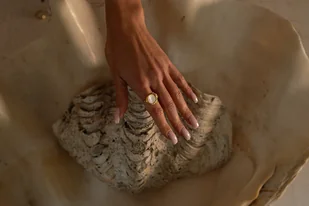 Złoty pierścionek z masą perłową Dream