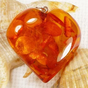 Wisiorek z bursztynu w kształcie serca Wykonany jest z bursztynu naturalnego bałtyckiego, zawieszka ze srebra próby 0,925. Waga wisiorka: 16,7 gram. Wymiary ...
