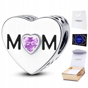 CHARMS SREBRNY dla Mamy Różowa Cyrkonia Mom Mother Serce Love SREBRO 925