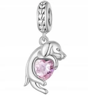 CHARMS piesek trzymający w łapkach różowe serduszko. Koralik został wykonany z najwyższej próby srebra 925. Wymiary: Głębokość: 5mm Wysokość: 23mm Szerokość:...